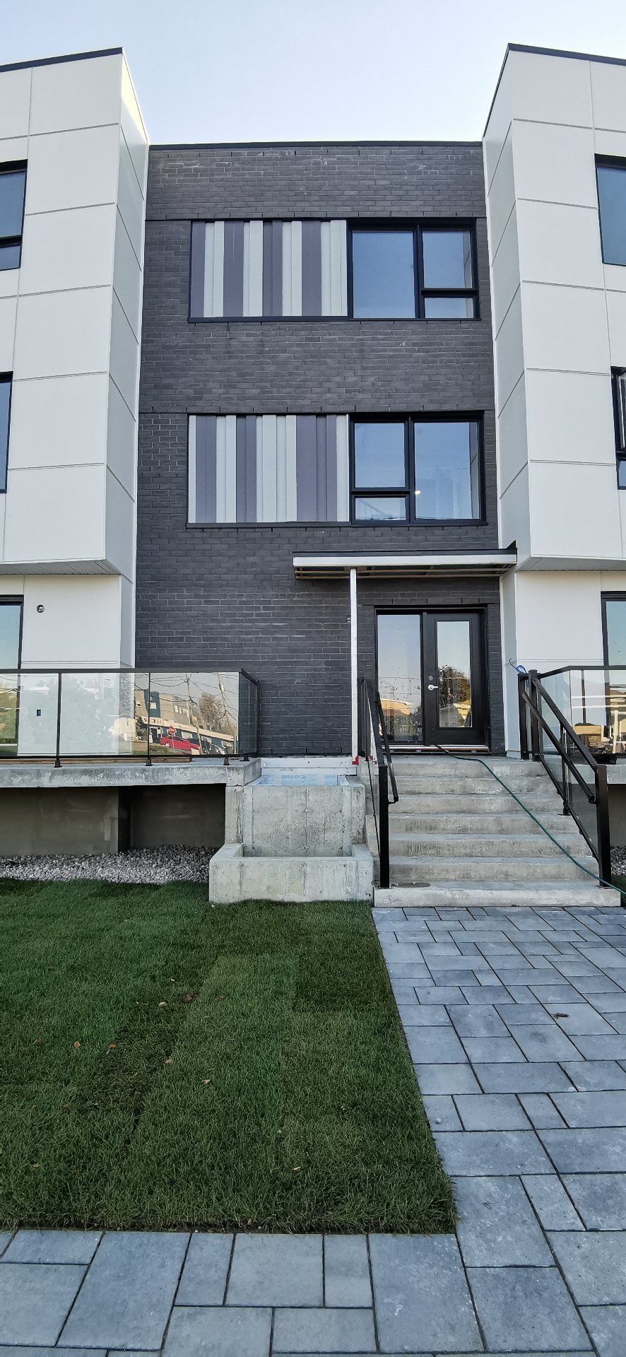 une entrée commune partagée avec 3 unités de condo.