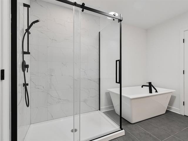direct à une salle de bain élégante avec une baignoire